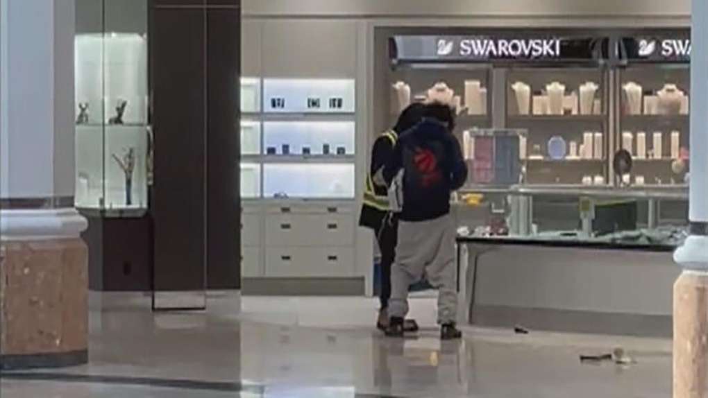 The entire scene was caught on camera, showing two alleged criminals enter the store shortly after 5 p.m. on Monday, hammering their way through display cases at Doucet Jewelry Store.